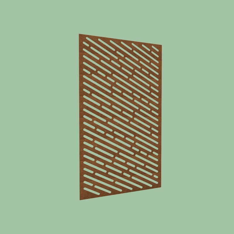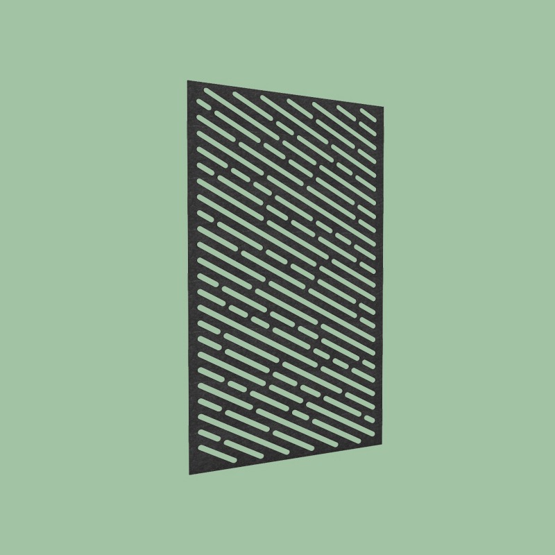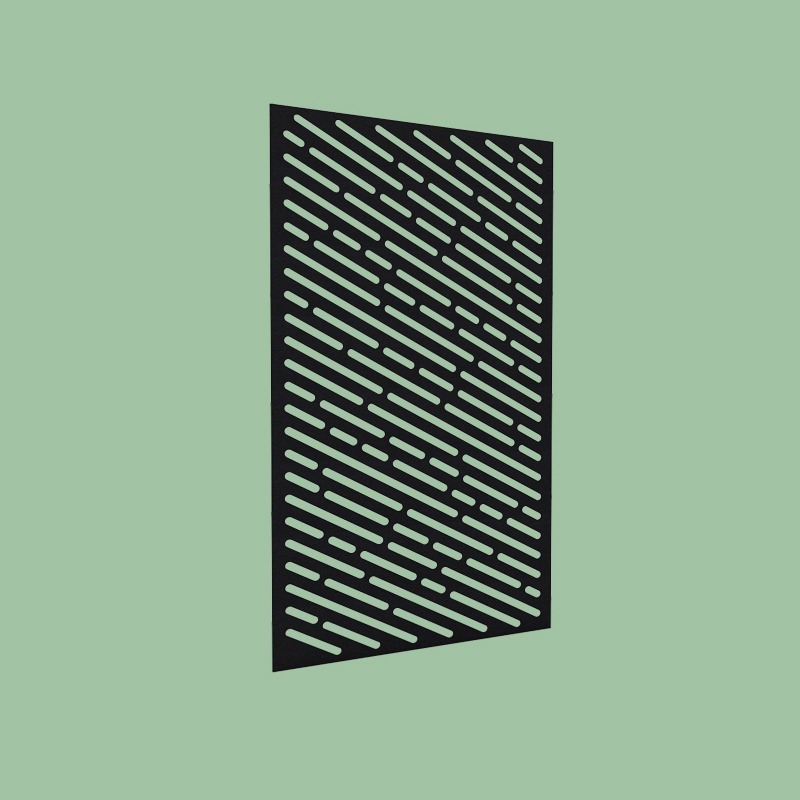 Angled-slot perforations, crafted through computational-aided design, elegantly decorate this sound-absorbing screen. Utilise it to divide larger areas into smaller spaces, improving both visual and acoustic seclusion.
