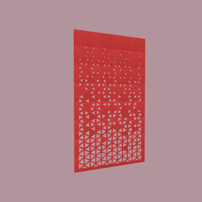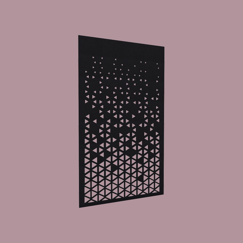 Triangle-shaped perforations, designed with computational-aided design, gracefully adorn this sound-absorbing screen. Use it to section off smaller areas within larger spaces, while enhancing both visual and acoustic privacy.