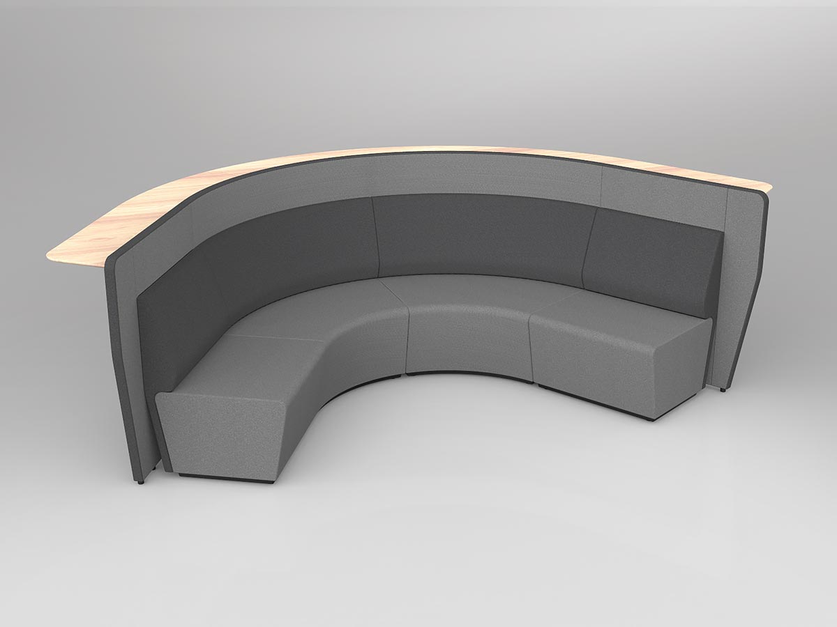 Collaborate Expo is ideal for workplace presentations, providing 2 defined tiers for workers to gather around. The screens provide some acoustic privacy and help to define the area for its use. The bar leaner height desks provide space for laptops or notebooks as required.