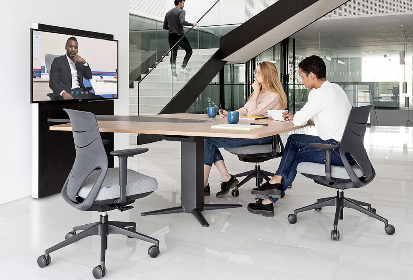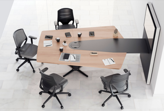 Power, designed by Javier Cuñado of ITEM Designworks, is a system of office tables that combines design and technology to create versatile and height-adjustable workstations that promote mobility in the workplace