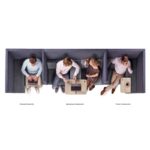 Hybrid huddle space allows for both individual and collaborative work. Its perfect to add a little pivacy to your team meetings in an open plan environment. Business class’ worktops that can slide to or from the body and can rotate so that people always have a pleasant working posture.