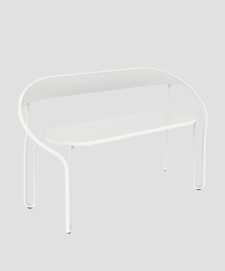 With a unique aesthetic and unseen playfulness, this Huggy bistro bench chair is full of character and moderation. All-weather & UV resistant, Stackable.