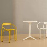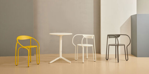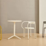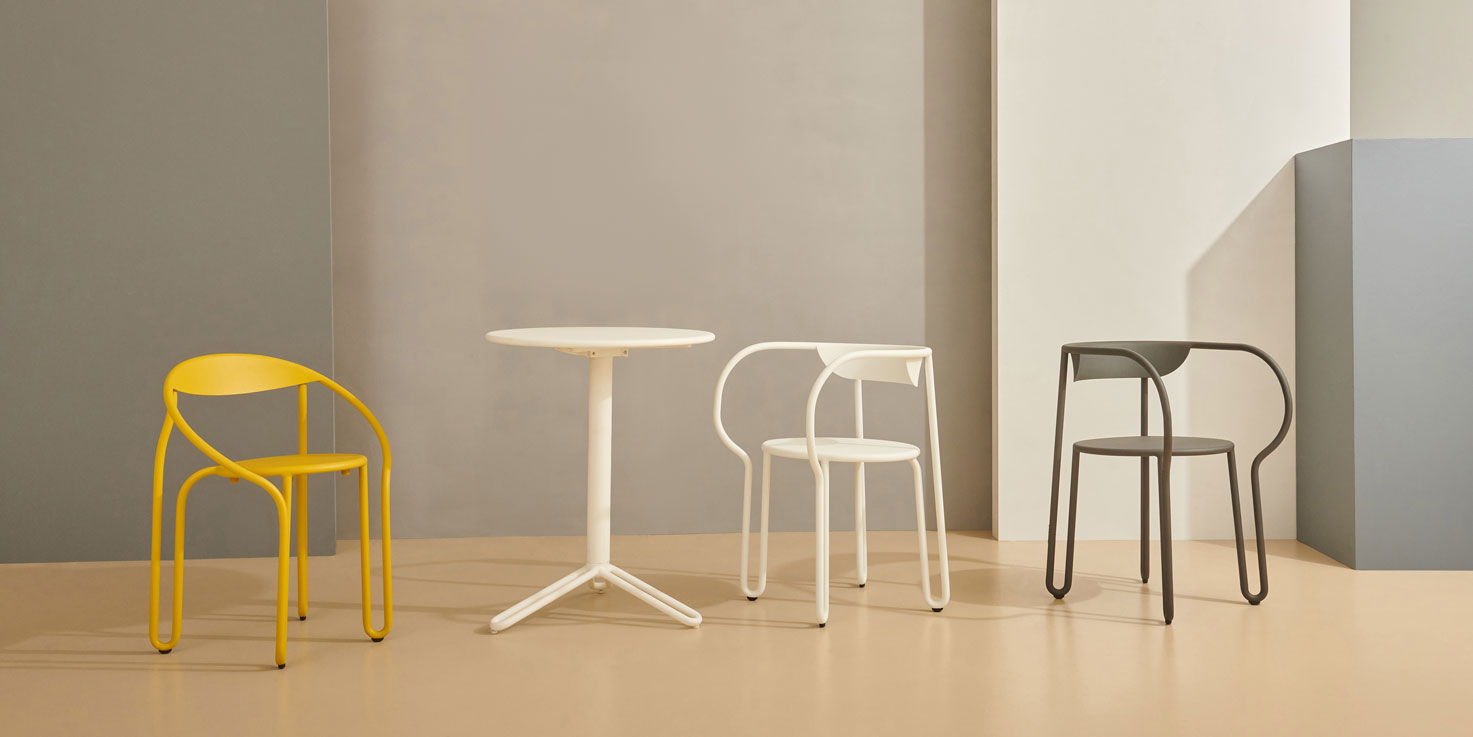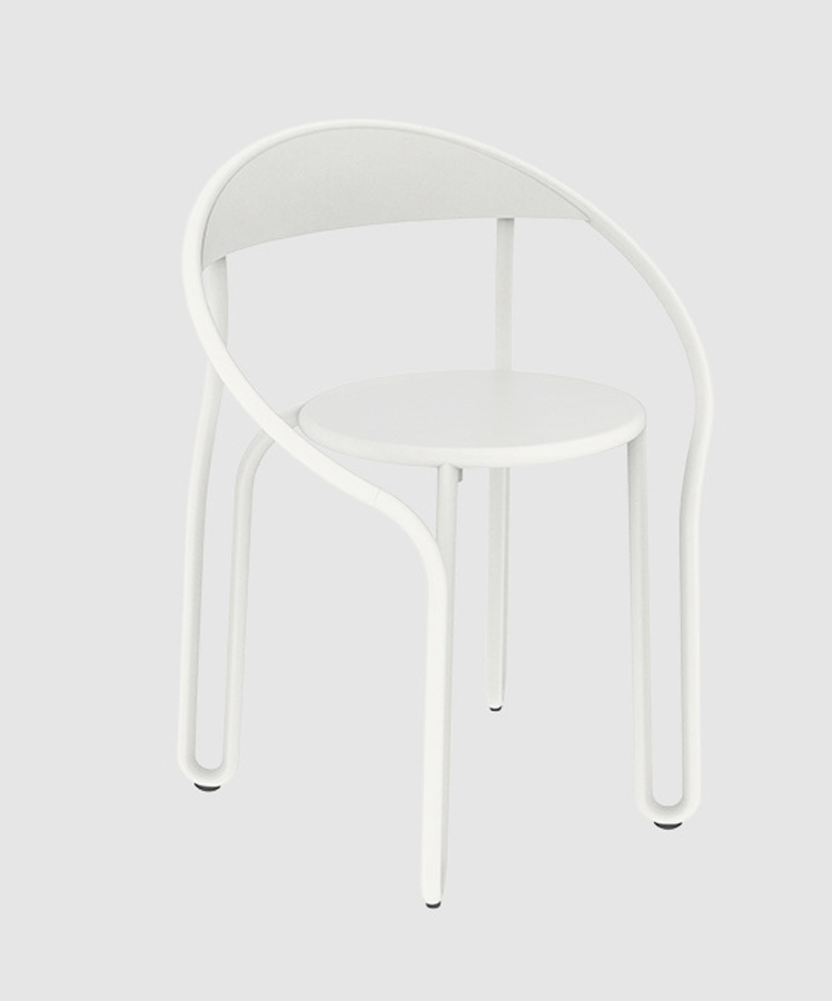 Inspired by the classics Parisienne bistro chair, Huggy bistro chair has a lightweight and strong tubular aluminum frame that combines simplicity and material efficiency in a poetic manner. Conveniently stackable. Available in a range of contemporary colours.