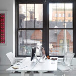 Diffrient developed the chair’s back using the laws of physics, which eliminates the requirement for a separate lumbar support, which tends to create a pressure point and requires manual adjustment. With patented Form Sensing Mesh Technology, the backrest perfectly conforms to the sitter’s entire back as if custom made for them.