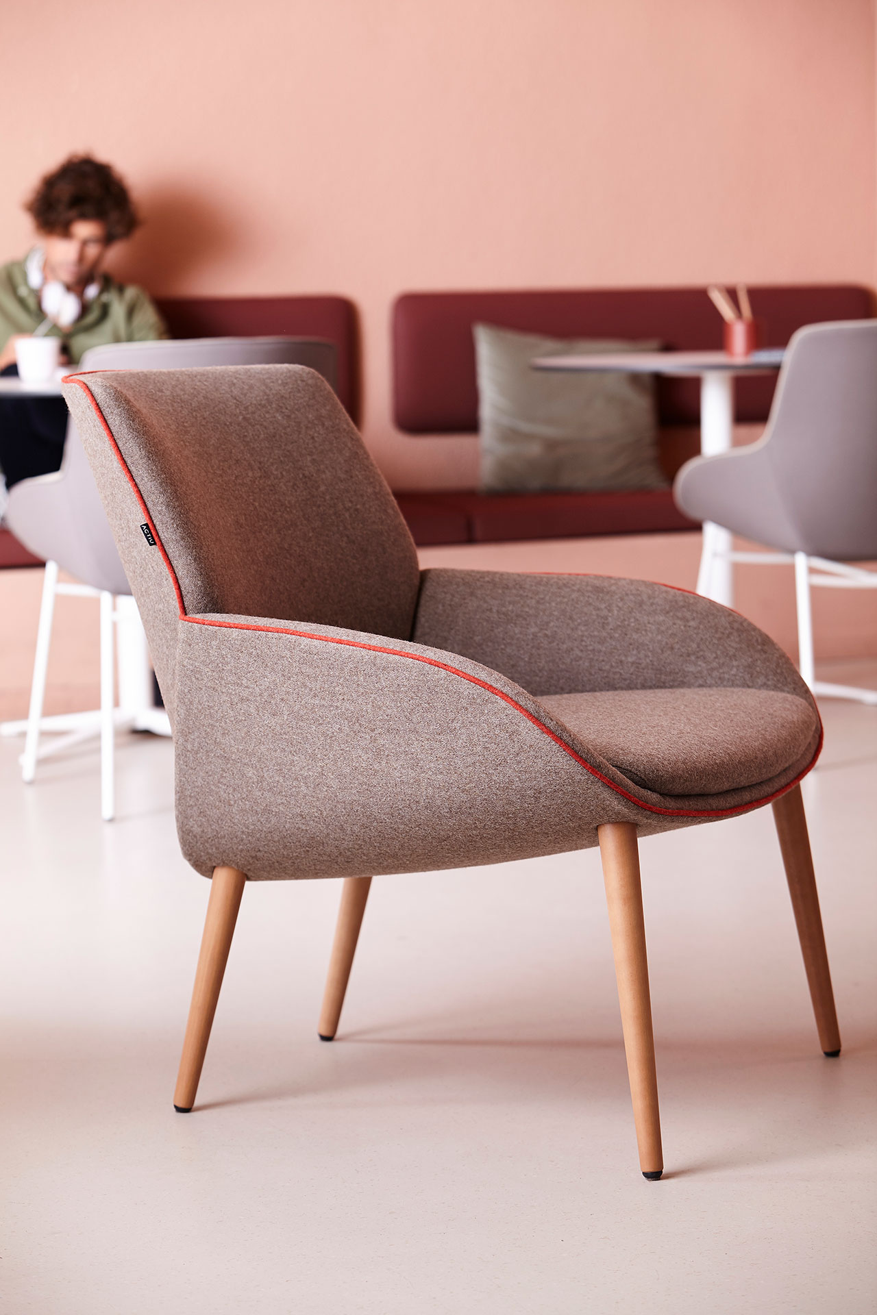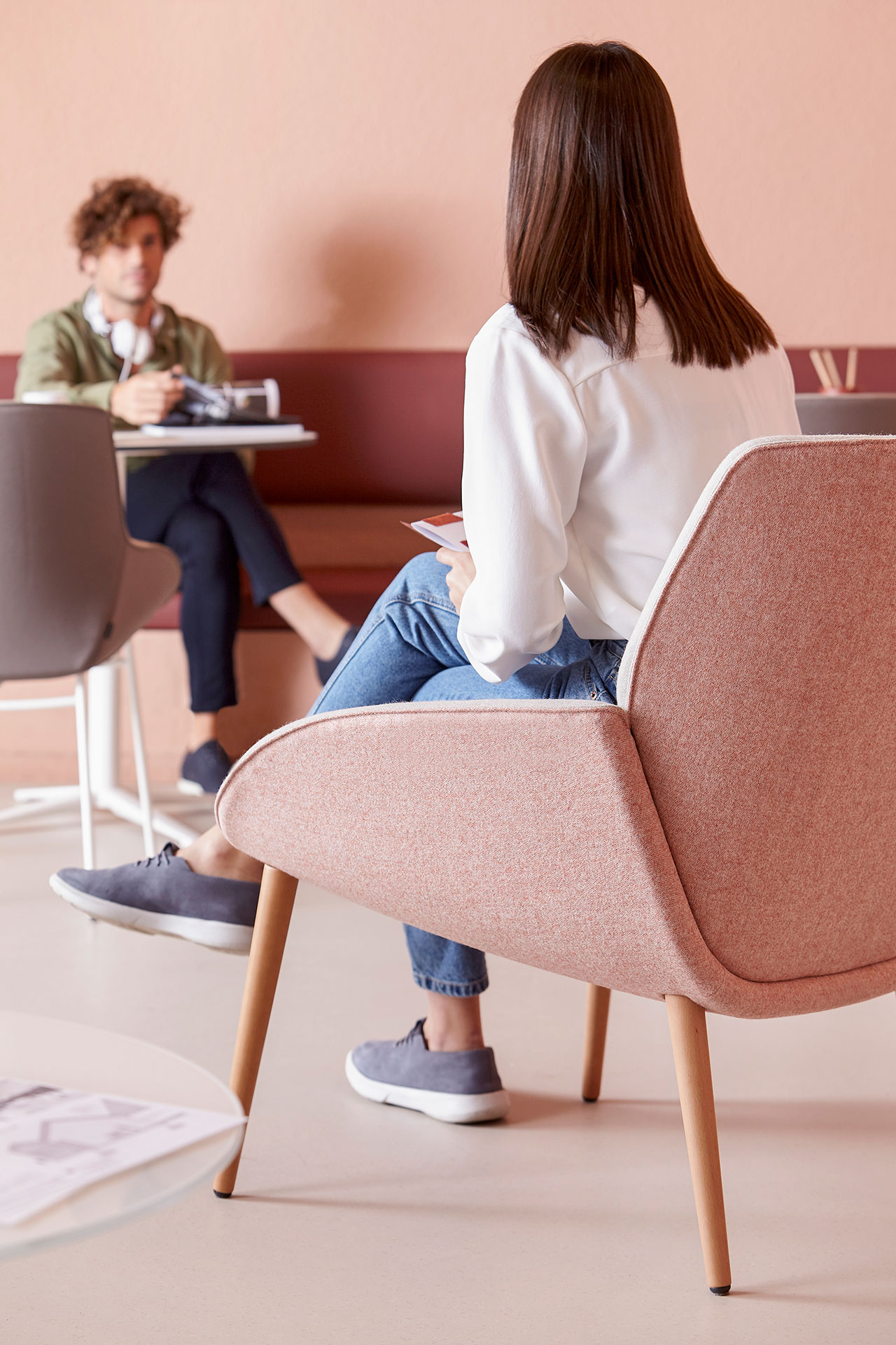 Noom has been created to humanize spaces, with a friendly, elegant and differentiated design. It is designed to promote communication and transmit well-being, indispensable in everyday life. Noom fits into very different environments and moments, thanks to its high customisation capacity. Noom’s innovative shape, which incorporates integrated armrests and interconnected seat and backrest, manages to accommodate the body comfortably for long periods of time. They are functional and provide design to meeting rooms, meeting points, waiting areas and gastronomic spaces, among other environments.