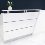 Accompanied with a white hob top on chrome posts & stainless kickboard