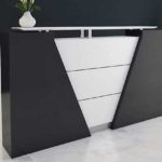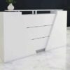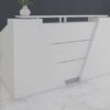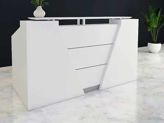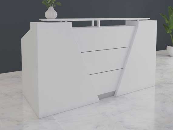White 2pack front panel with aluminium strips, plus dual overhang white feature panels.