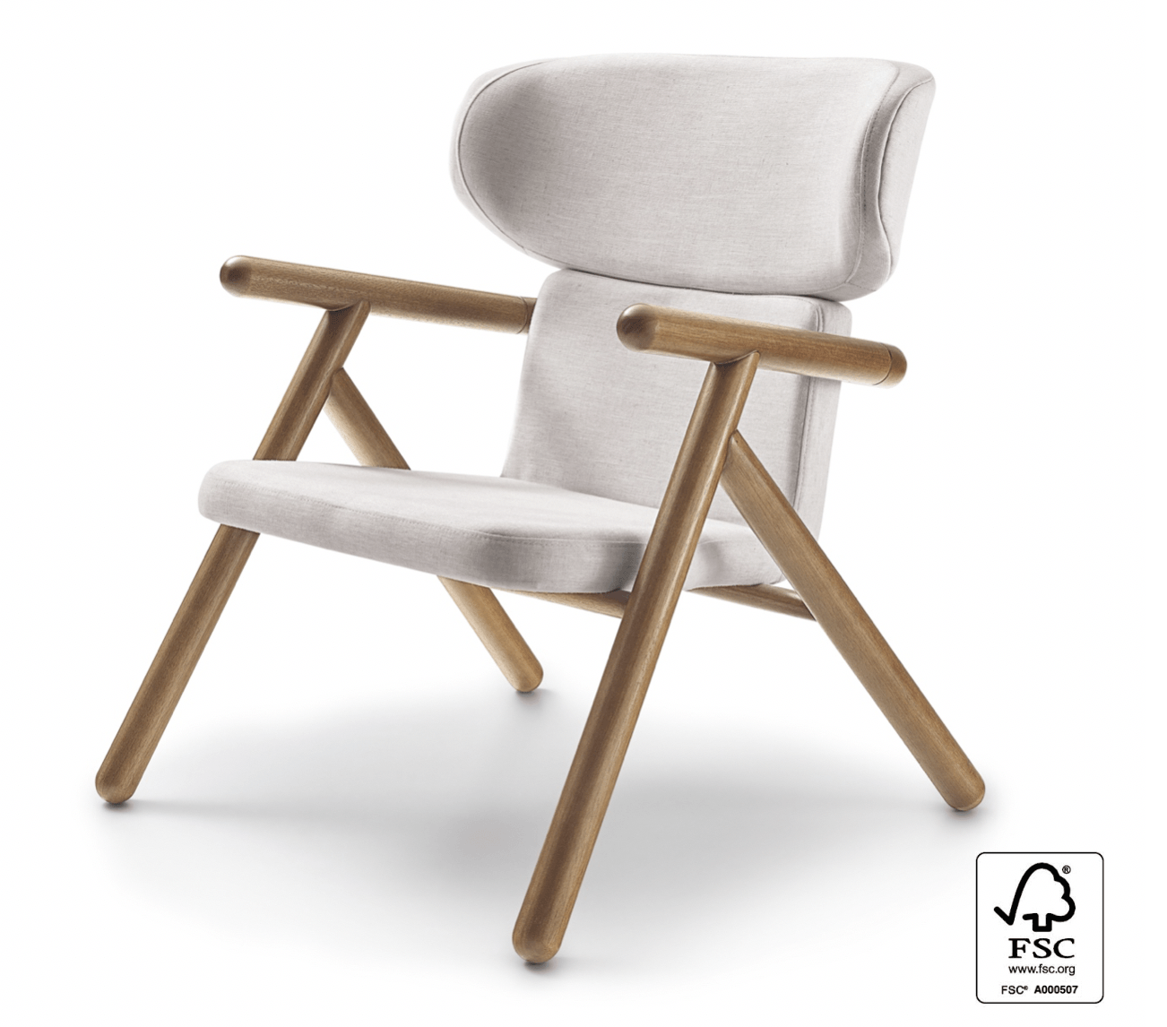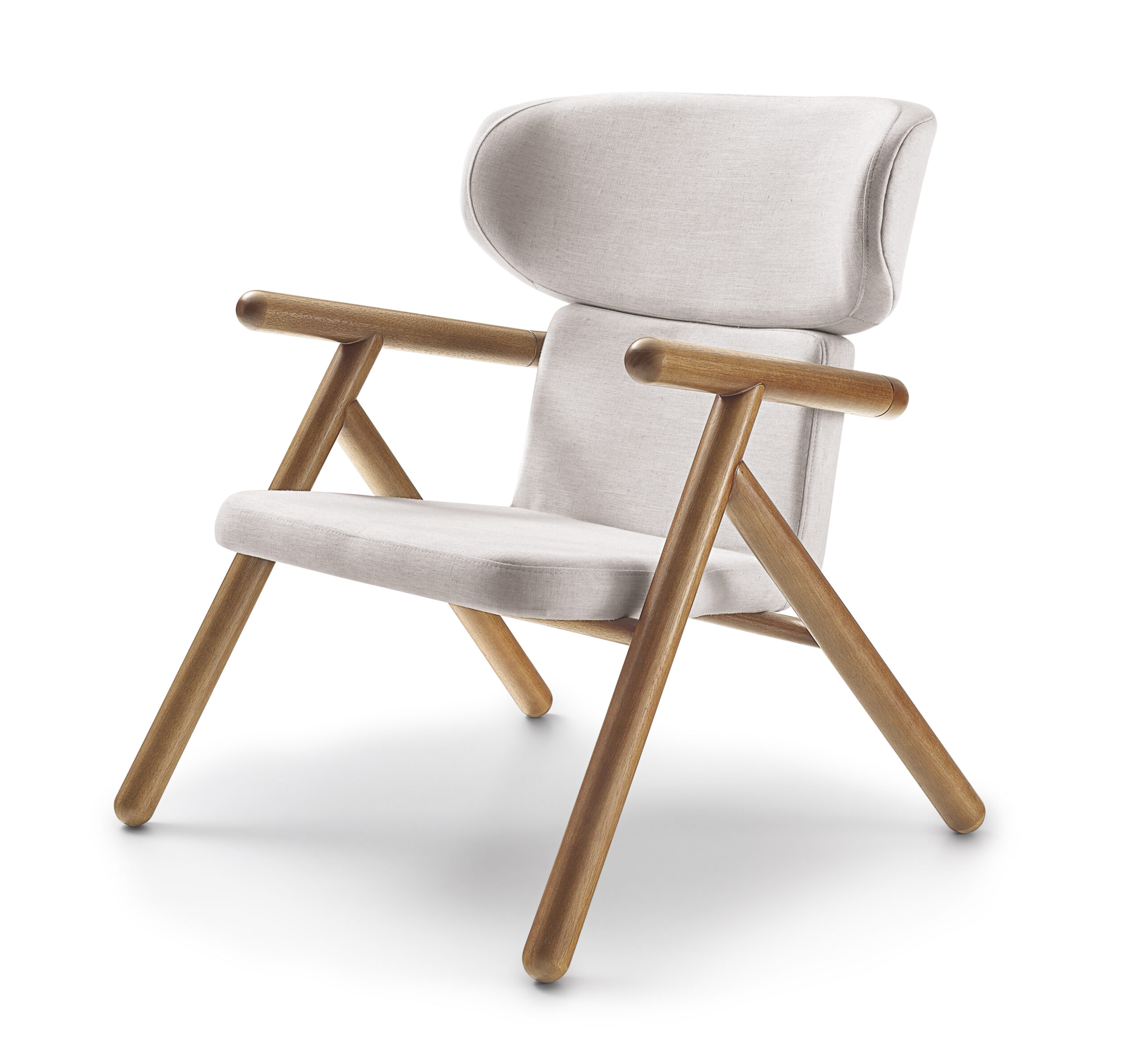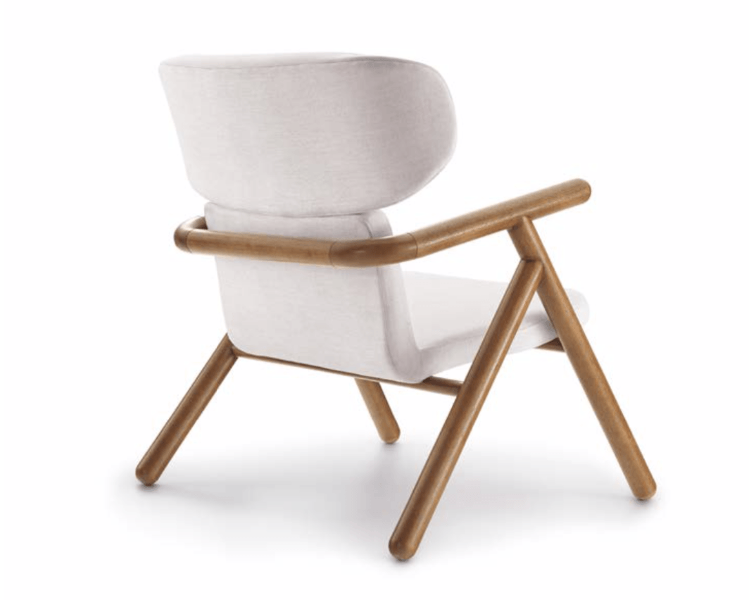 This Scandinavian-styled armchair features a beautifully shaped frame with a fabric seat and fabric inside the back. With a multi-laminated wooden shell coated with the best foam, contoured by a round wooden structure, this unique armchair invites us to experience all its comfort and ergonomics applied in its construction. It is an essential piece for any contemporary-styled room.