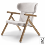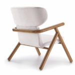 This Scandinavian-styled armchair features a beautifully shaped frame with a fabric seat and fabric inside the back. With a multi-laminated wooden shell coated with the best foam, contoured by a round wooden structure, this unique armchair invites us to experience all its comfort and ergonomics applied in its construction. It is an essential piece for any contemporary-styled room.