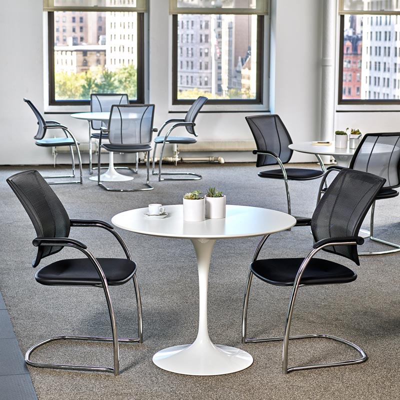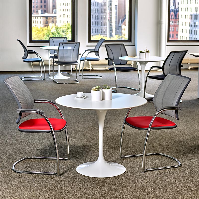 Diffrient Occasional responds to the sitter and adapts to the contours of the body. Featuring expertly welded joints that create a continuous frame, Occasional is suitable for any office or home environment. It can be configured to match Humanscale Diffrient Smart, Diffrient World or Liberty task chairs for a consistent and restrained look.