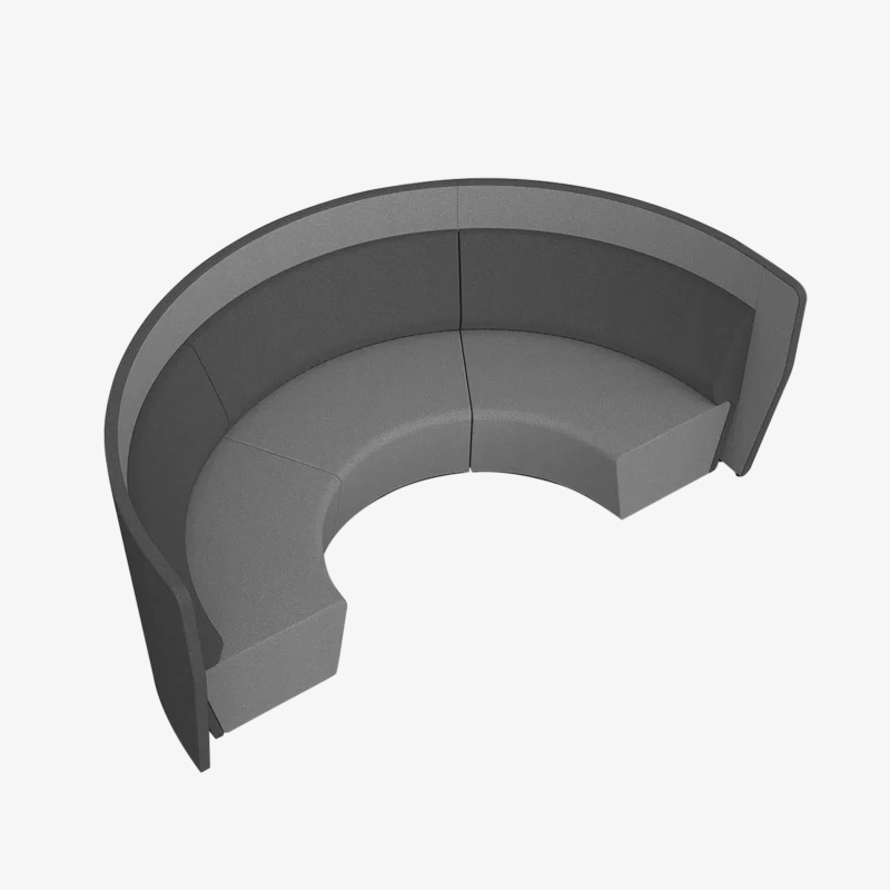 Collaborate Arc settings provide space for people to collaborate together, with the option of additional screens to enclose the space and provide a high level of privacy for workers. Includes 2x Collaborate Loop Curved 60° Outer Back.