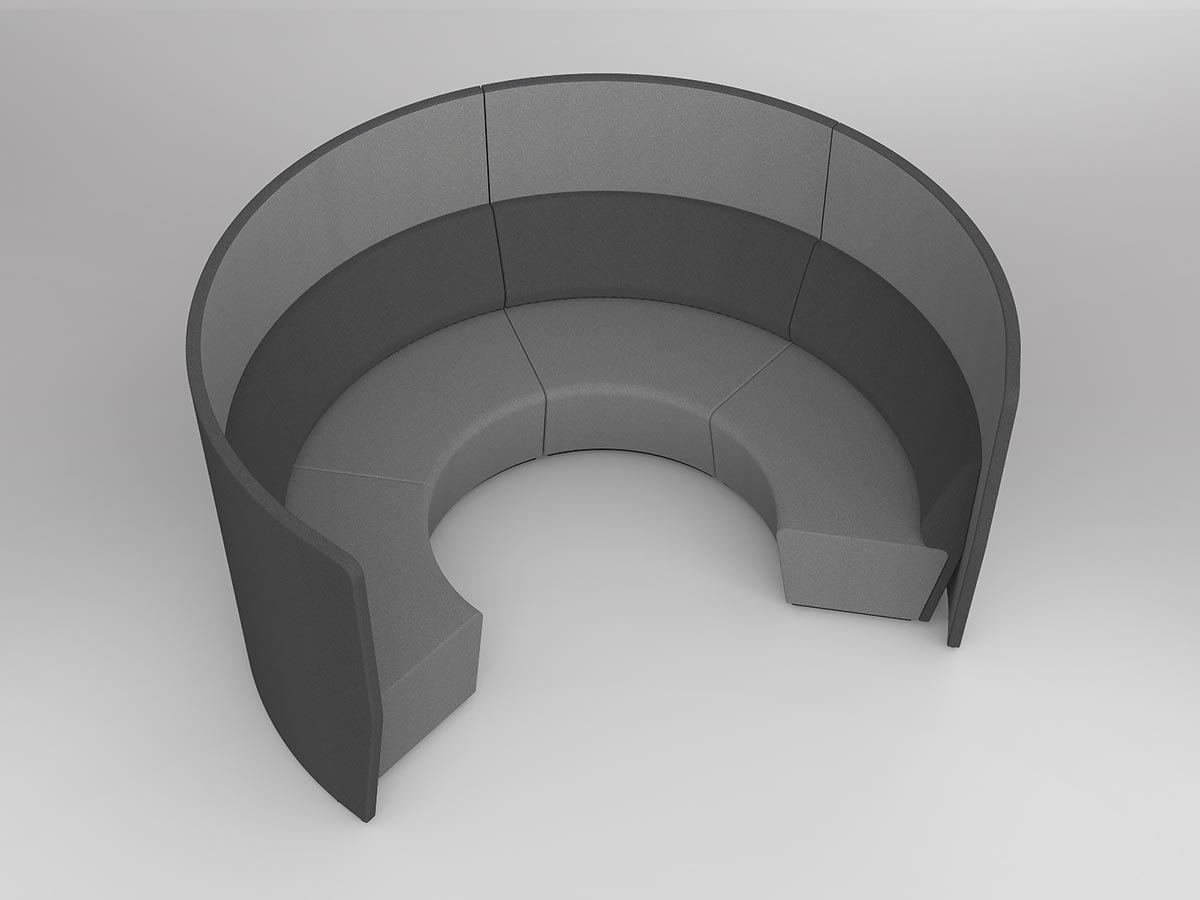 Collaborate Arc settings provide space for people to collaborate together, with the option of additional screens to enclose the space and provide a high level of privacy for workers. Includes 4x Collaborate Loop Curved 60° Outer Back and 1400mm walls.