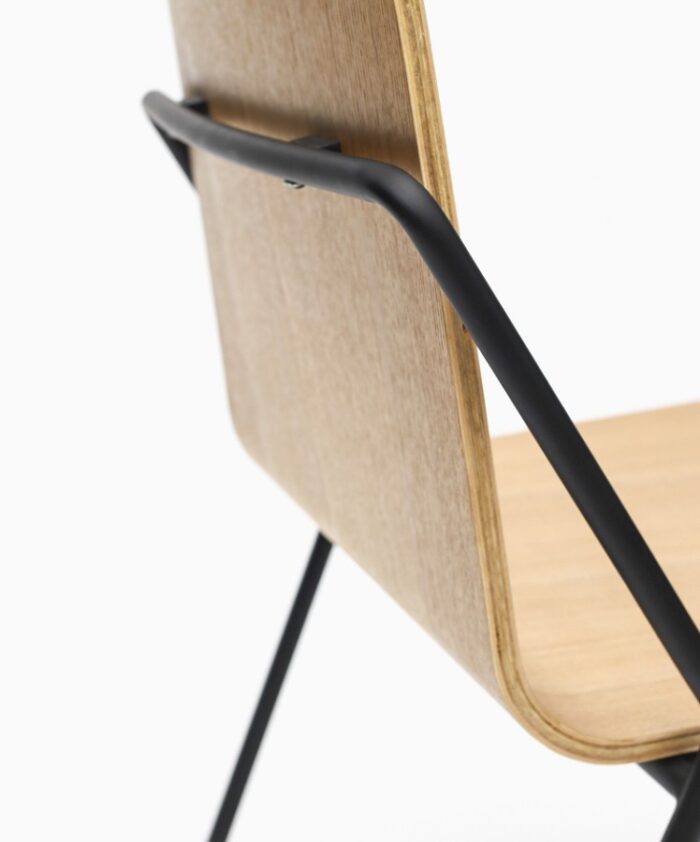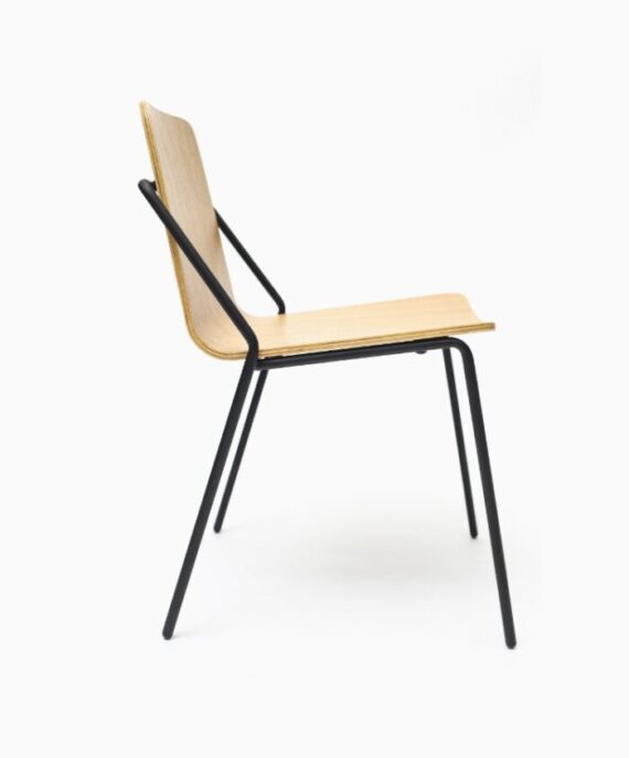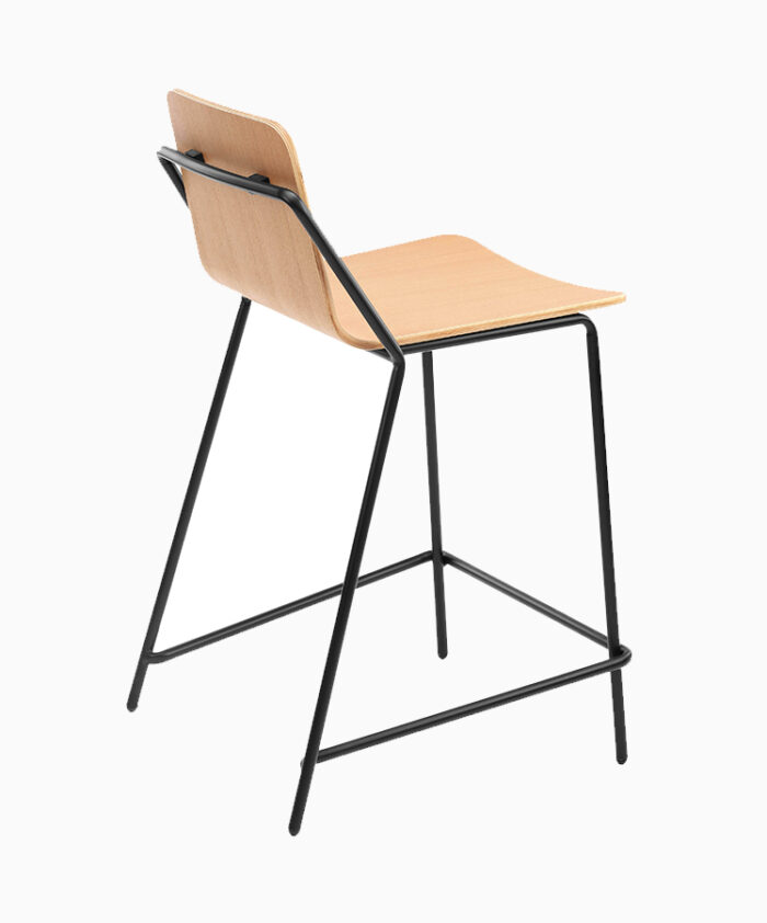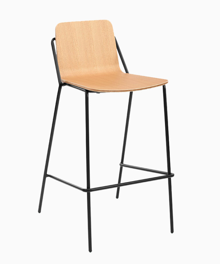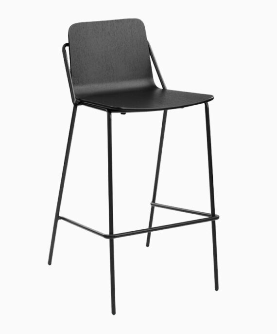 Sling ticks all the boxes and wins hands down every time. Modern, comfortable and functional. Sling chair and stool feature a rear leg that follows the angle of the back, becoming both a structural support and design feature at the same time.