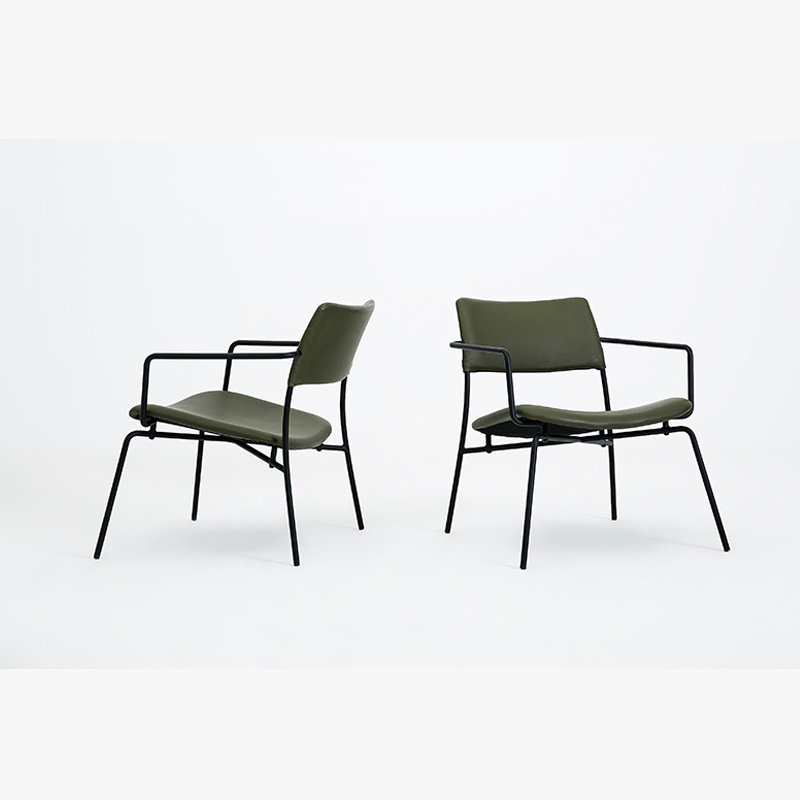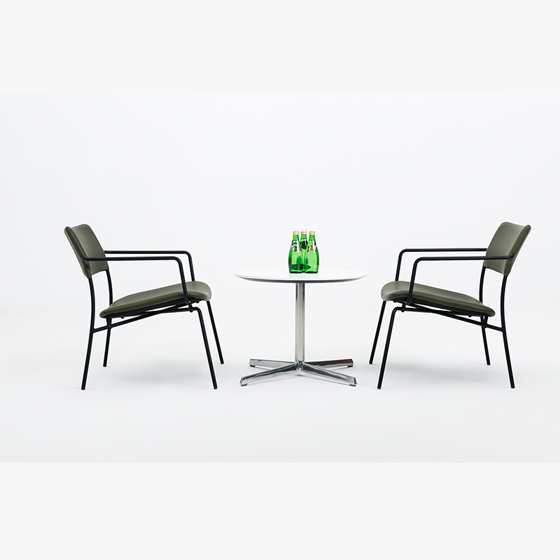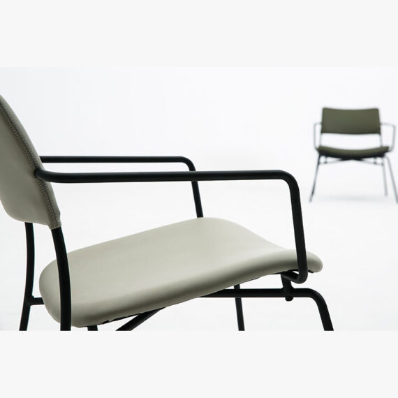 The dynamic and curved armrest suggests lightness brings aesthetic balance around every table.