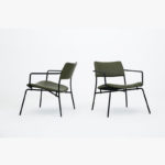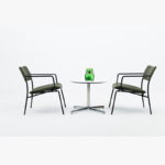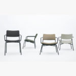 The dynamic and curved armrest suggests lightness brings aesthetic balance around every table.