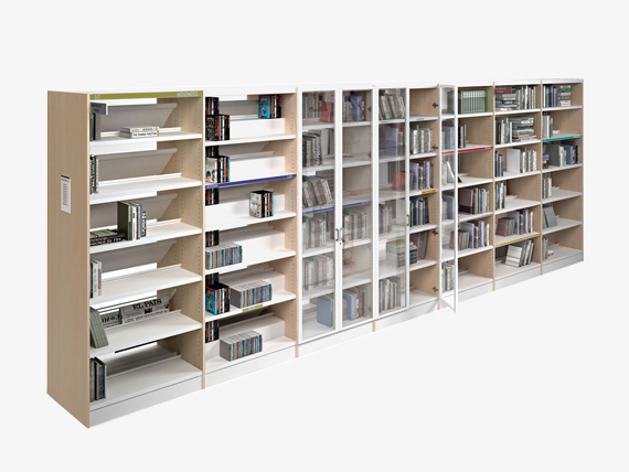 Class has been designed from the more technical rigor, developing solutions that facilitate assembly, providing maximum flexibility for expansion and continuity of each project. The natural finish, modularity and warmth, form a product made with natural wood or melamine chipboard in a standardized manner. Shelving system with sides from steel sheets with double panel.