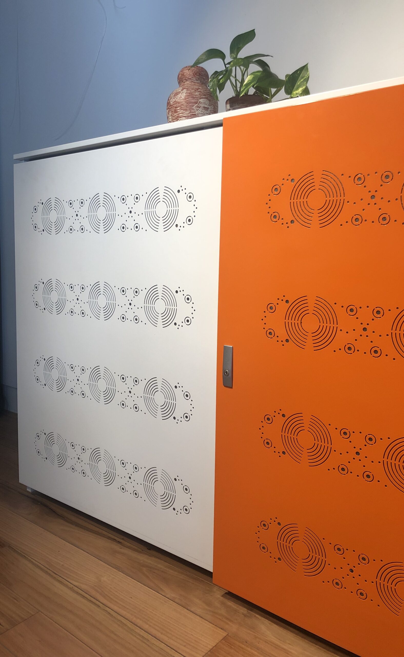 Winya’s new perforated acoustic storage system in collaboration with Michael West and his “Message Stick” designs are the perfect storage solution for your offices.