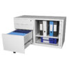 The Steelco Trimline Mobile Caddy is ideal for under desk storage or as an extended workspace storage unit. This unit is available with either a tambour side door or as an open shelf side and features two box drawers and one suspension file drawer.