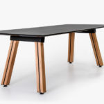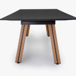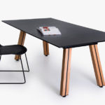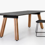 The Aqua table uses bold lines to draw attention upwards from the timber legs towards the contrasting top. Aqua looks and feels robust but maintains an air of elegance with soft angles to counter rigid corners.