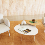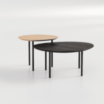 The Lotus coffee table draws inspiration from the organic shapes found in nature, specifically the layered structure of a lotus leaf. This design evokes the serene beauty of summer landscapes. The table features an array of shapes, sizes, and heights, with larger tables seamlessly nesting beneath smaller ones, creating a visual effect reminiscent of a natural eclipse.