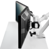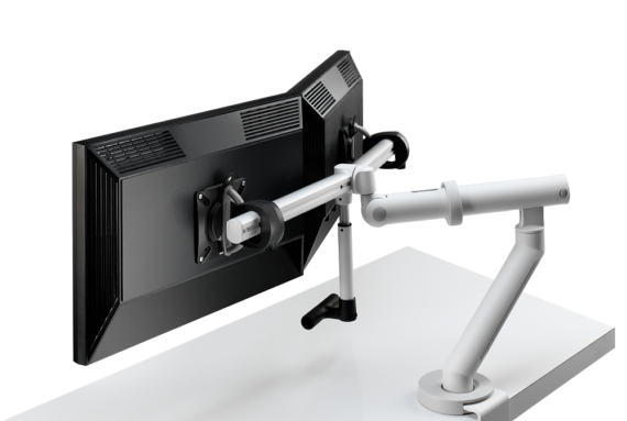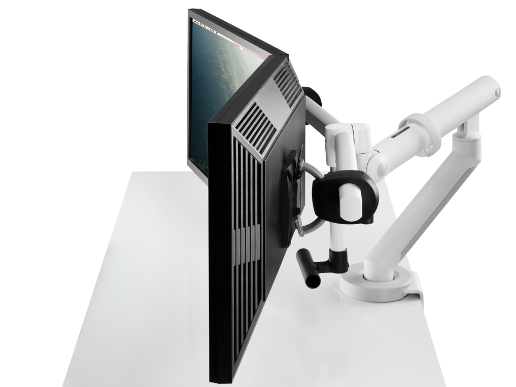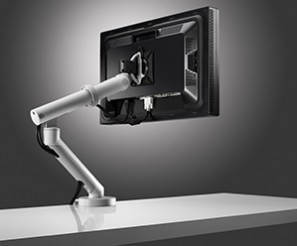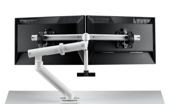 Flo Plus is the ideal dual monitor stand for supporting two high-load screens in a dynamic format. The screens do not move independently of each other but instead rotate from a central fixing point and can be positioned according to user requirements.