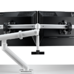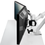 Flo Plus is the ideal dual monitor stand for supporting two high-load screens in a dynamic format. The screens do not move independently of each other but instead rotate from a central fixing point and can be positioned according to user requirements.