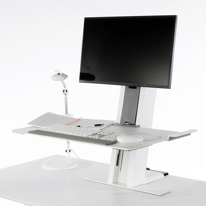 The QuickStand workstation is robustly designed to ensure the keyboard platform remains stable with no bouncing when the user types. Available in a number of configurations including dual monitor setups, QuickStand is the perfect co-worker for any space.