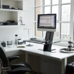 A sleek design with a minimalist aesthetic, QuickStand seamlessly integrates cable management, mechanisms, and moving parts into its chassis. Its minimal footprint frees up space on home office furniture, traditional work surfaces, temporary hot desks and collaborative workstations, allowing QuickStand to fit into any work setting.