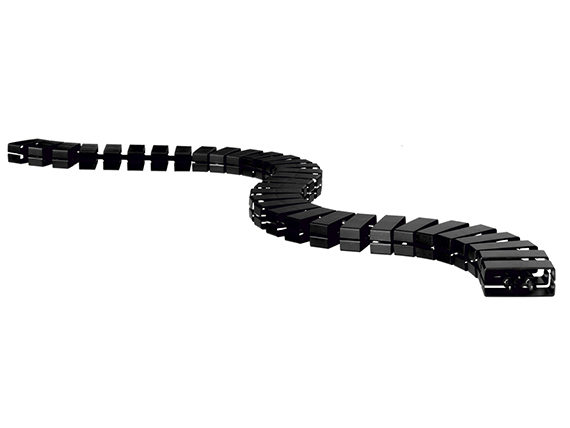 The Cable-Snake® Cube system rolls like a caterpillar track. The Cube 3D chain link can be extended to offer maximum flexibility and compressed to create a closed cable channel. The 2D chain link can offer horizontal stability while maintaining the vertical flexibility.